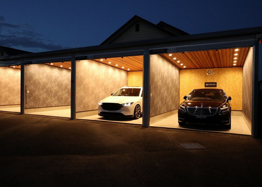 - LED照明による明るい空間: ガレージ内は、LED照明により明るく照らされます。夜間も安心して使用できます。