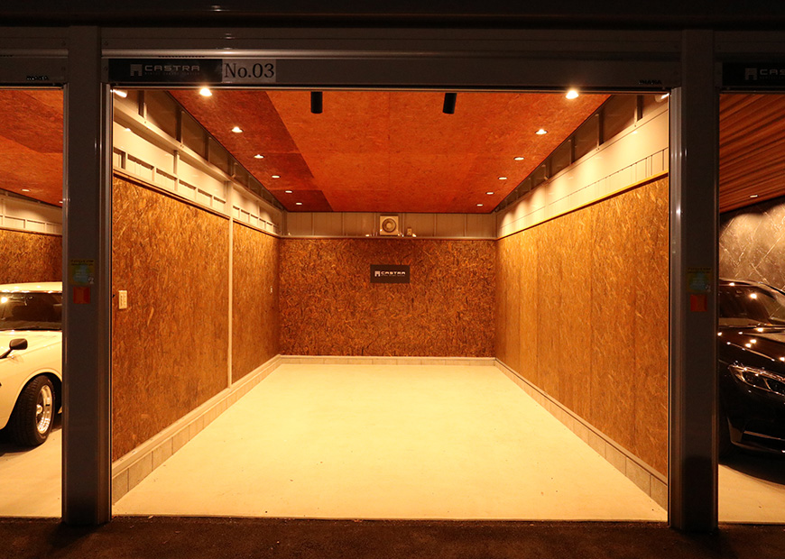CASTRAは大型車のドア開閉もスムーズに行え、ゆとりあるスペースを確保。愛車のメンテナンスやカスタマイズを、思う存分お楽しみいただけます。愛車のメンテナンススペースとしても最適。あなたのライフスタイルに合わせて、自由に活用できます。